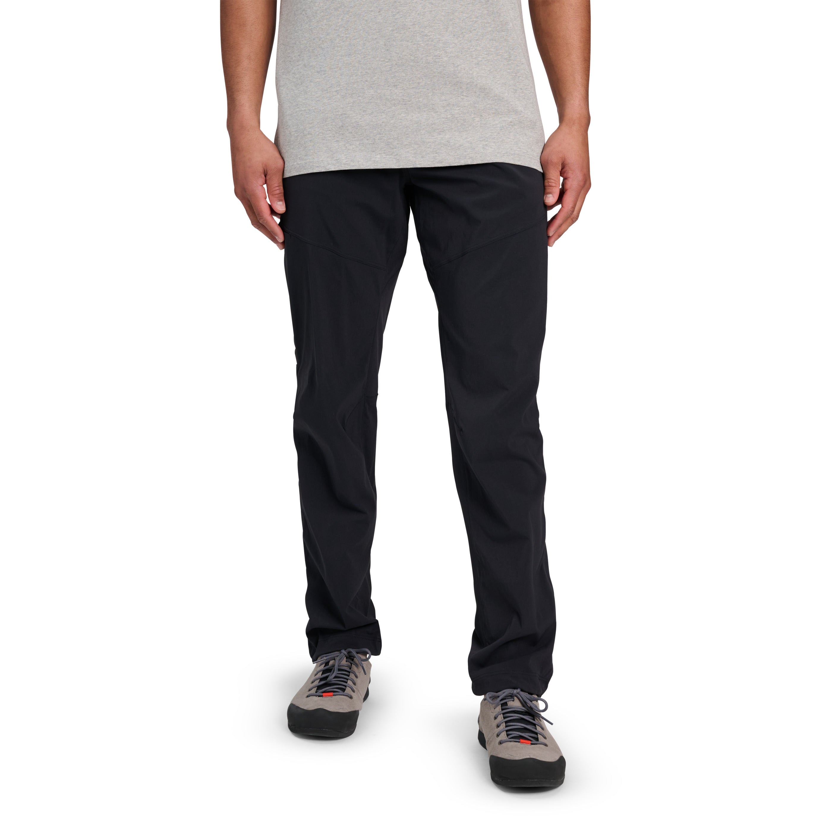 This fabric provides durability and freedom of movement whether you’re hiking all day, rallying a long drive on a road trip, or cragging. Activity-driven features include a gusseted inseam and articulated knees to allow room for high-stepping and boulder-hopping and an adjustable bottom hem cinch for biking or climbing. A simple straight leg with two front drop in pockets, two rear pockets, and a zip thigh pocket for stashing snacks or a phone round out the features on these versatile pants.