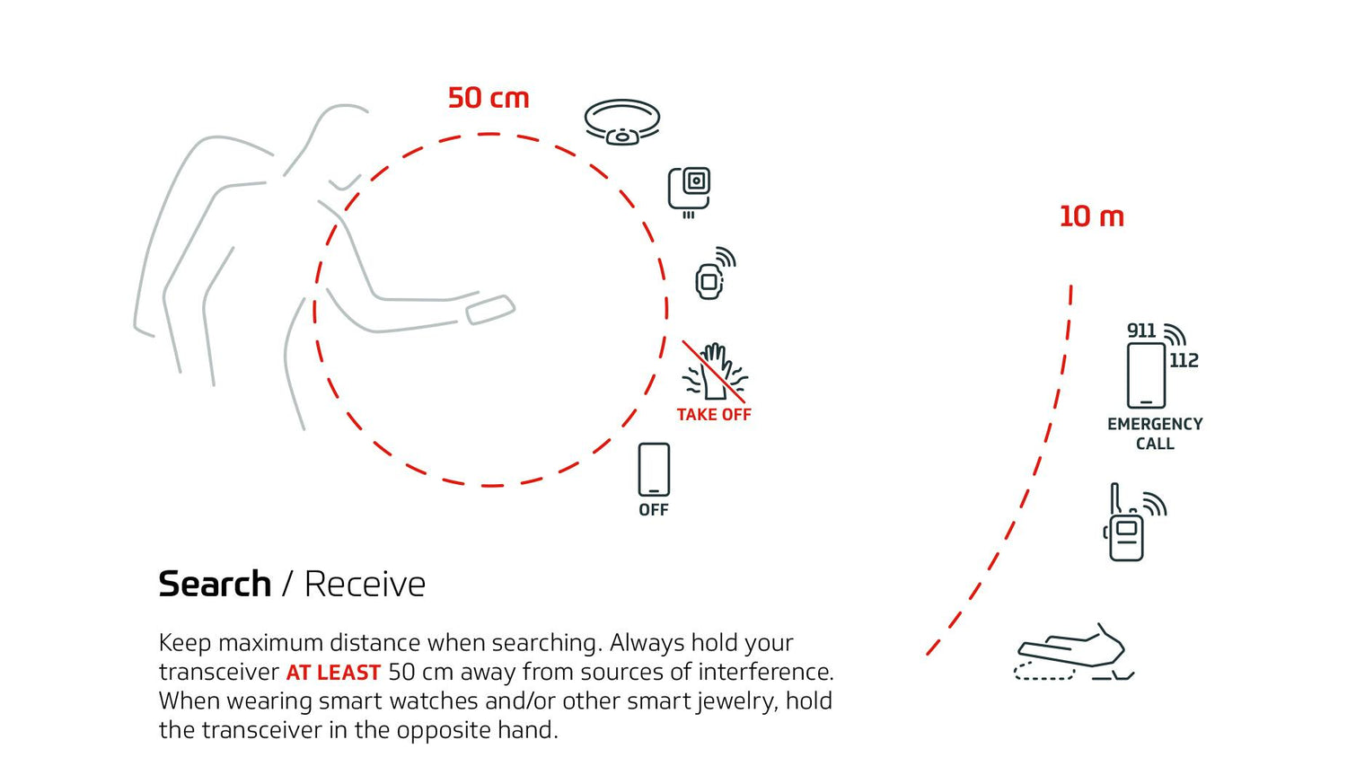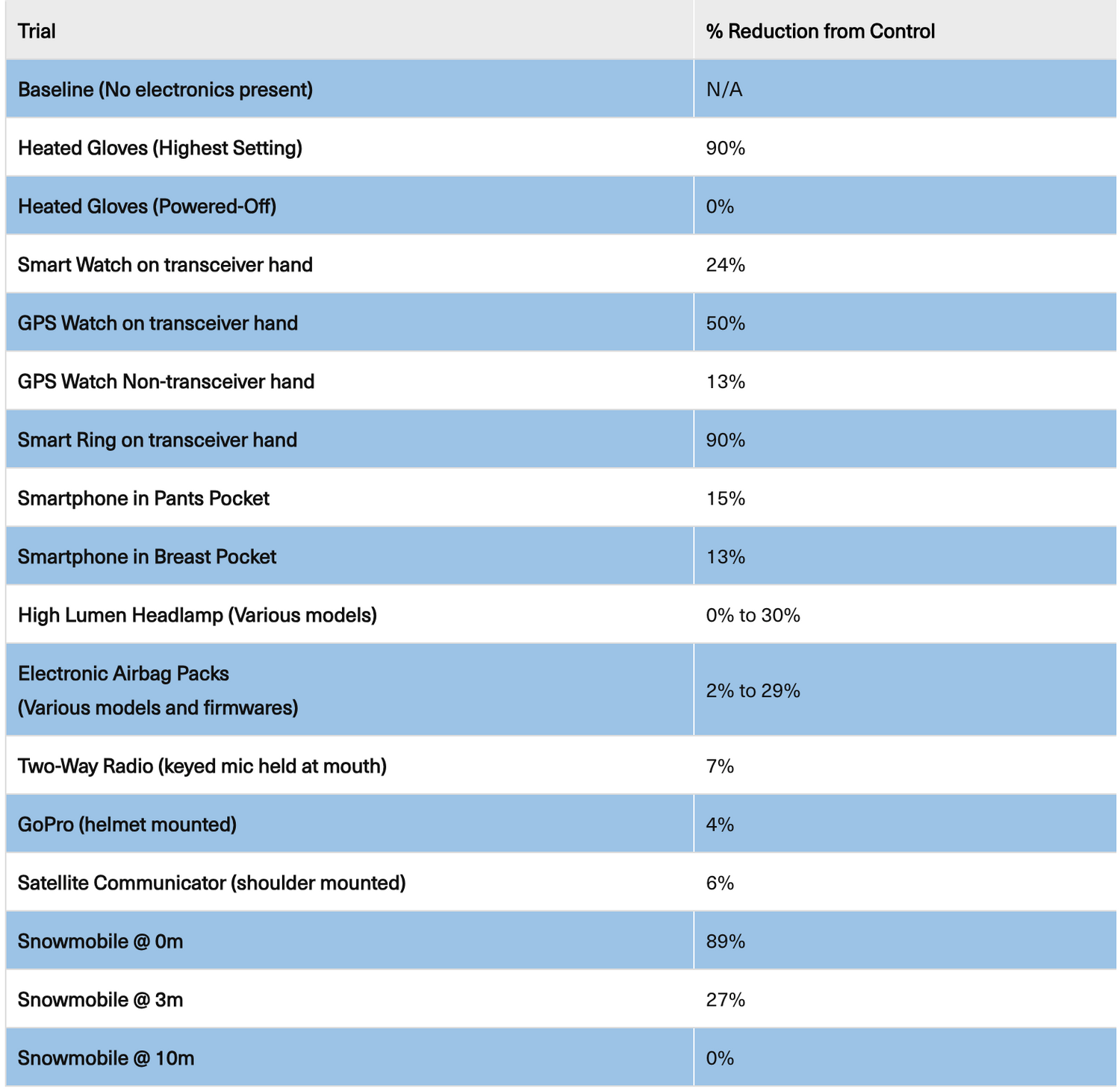 It is important to understand that this is a guideline and it in no way guarantees that all EMI will be mitigated. There are many types of electronics on the market, and some will cause interference at distances greater than 50cm. It is impossible to test all combinations, so we will focus on common personal electronics that are often found in the backcountry.