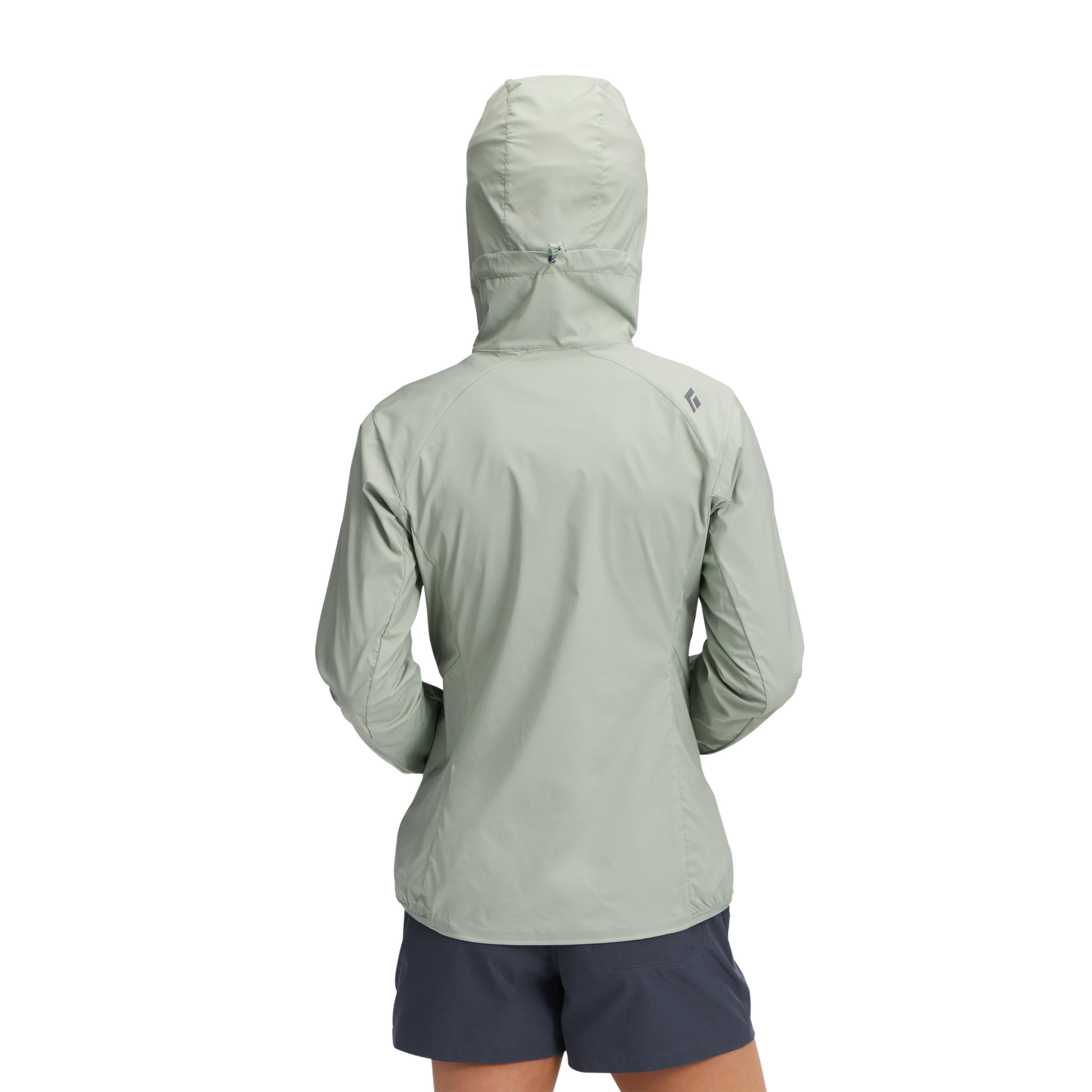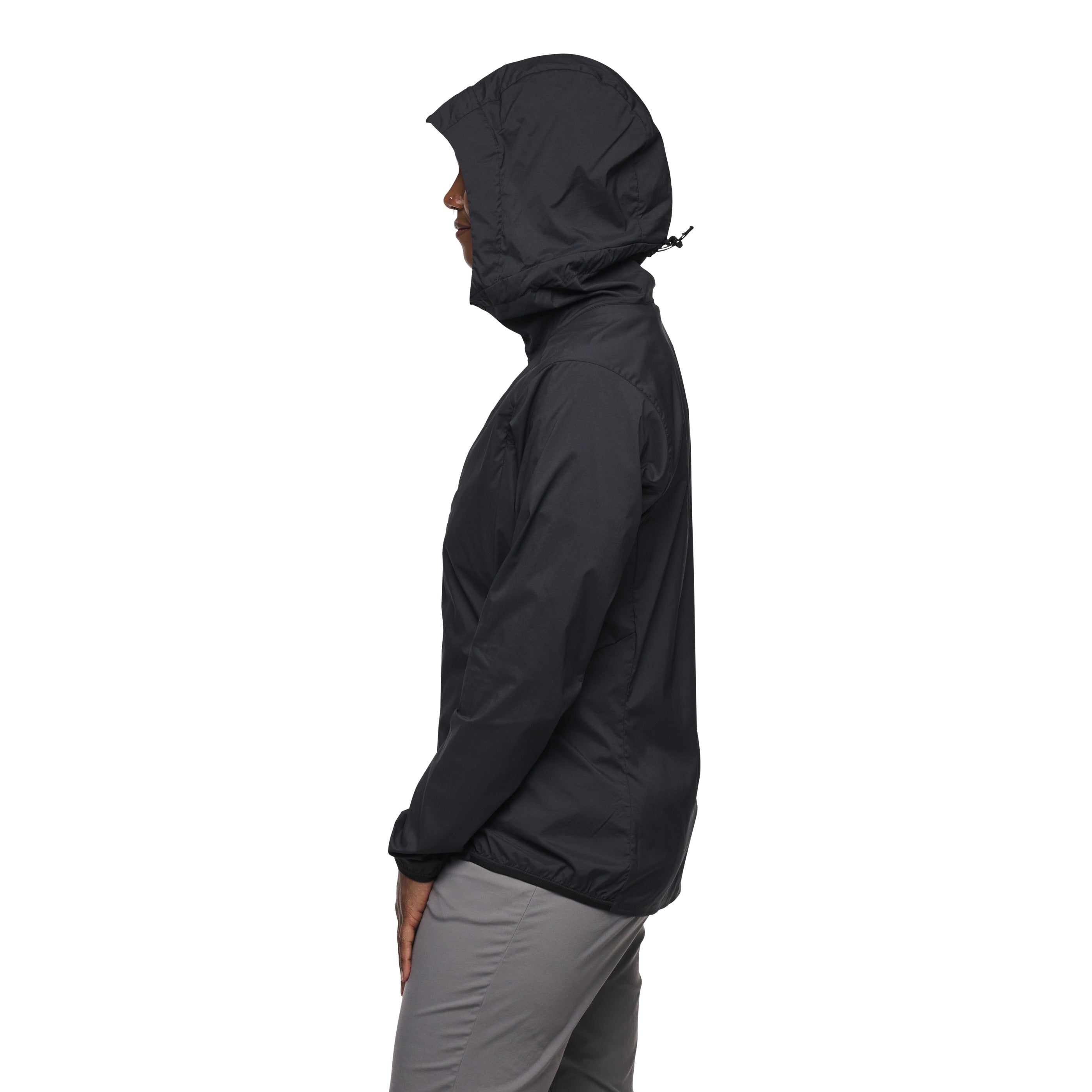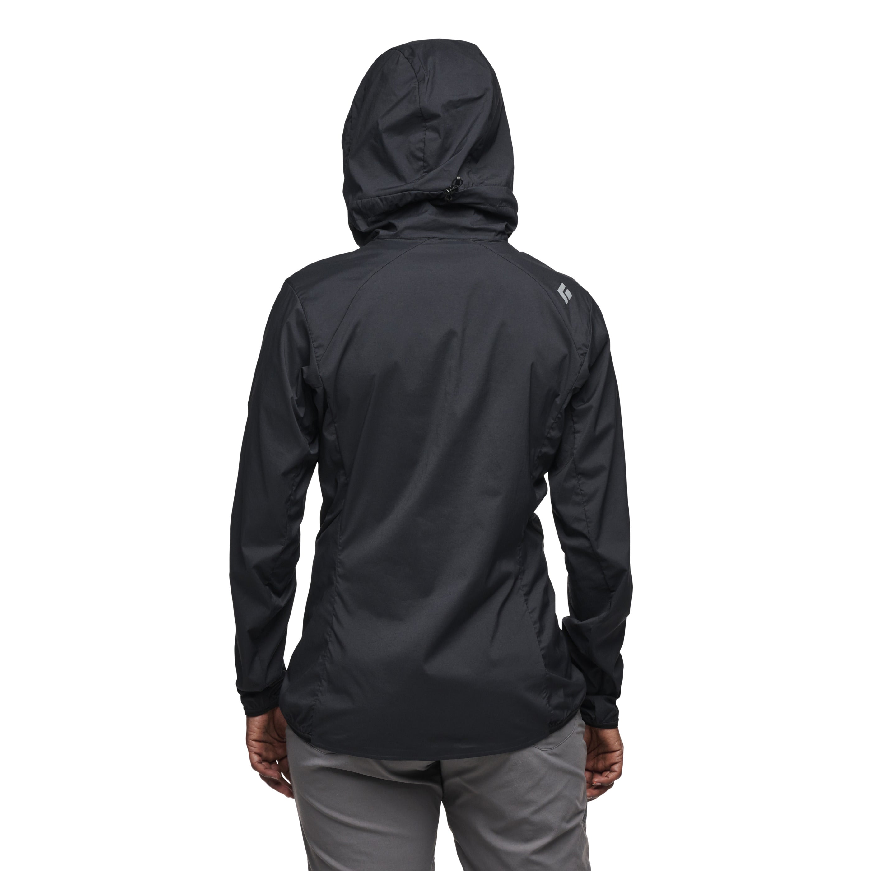 the Black Diamond Alpine Start Hoody features Schoeller stretch-woven fabric to provide highly breathable and highly packable weather resistance. An updated, women’s specific silhouette provides an increased range of motion and unrestricted movement, so that you can keep climbing even in windy and cold conditions. Elastic banding on hood, cuffs, and hem seals in warmth and secures fit, while a drop hem is harness-compatible.